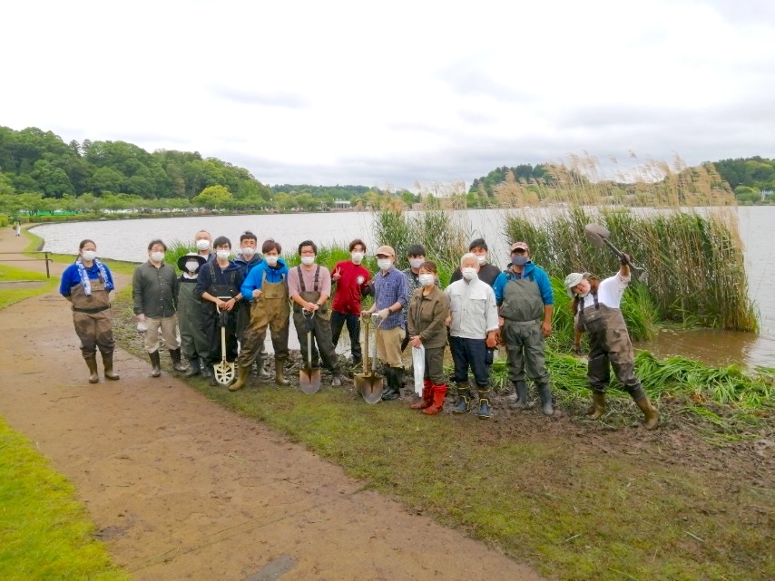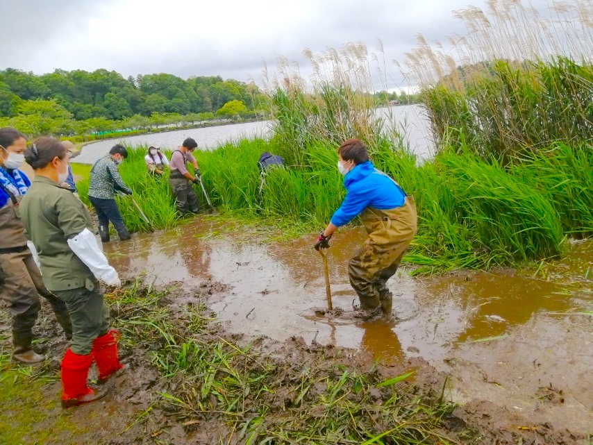水戸市環境フェア2021事業として開催される「千波湖市民ビオトープ」の事前準備。